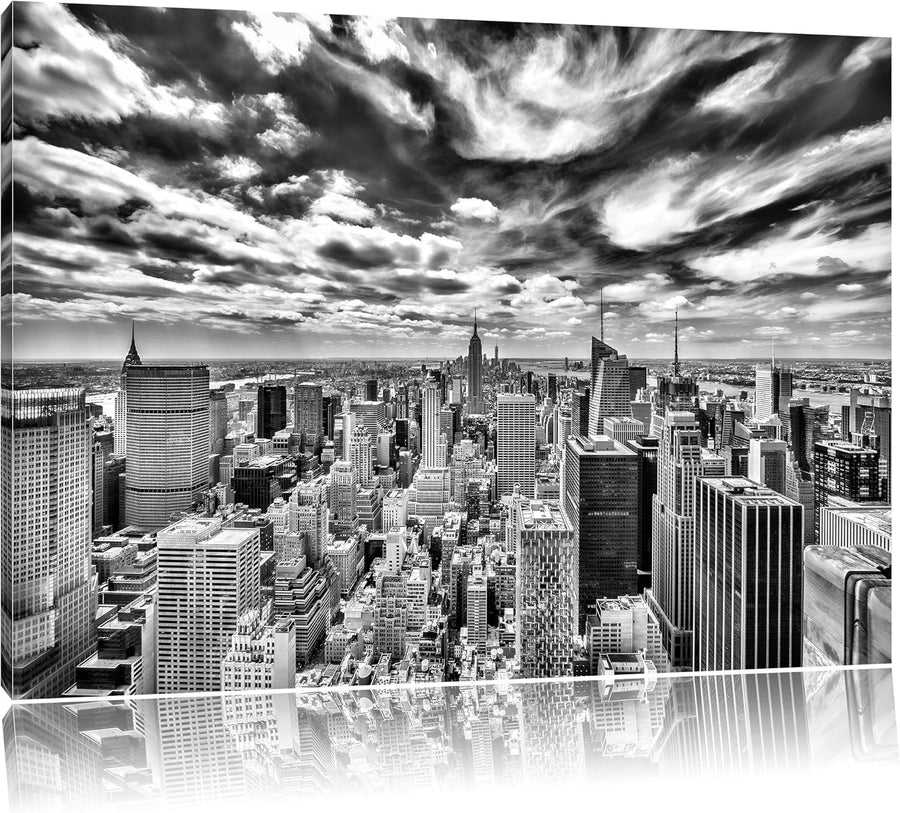 Pixxprint New York von Oben schwarz weiss als Leinwandbild | Grösse: 100x70 | Wandbild| Kunstdruck |