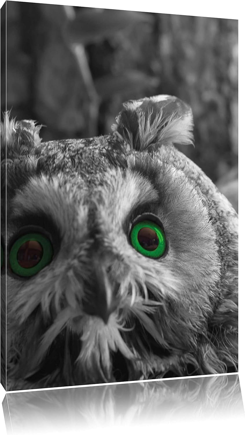 Pixxprint Niedliche Eule mit Grünen Augen als Leinwandbild/Grösse: 120x80 cm/Wandbild/Kunstdruck/fer