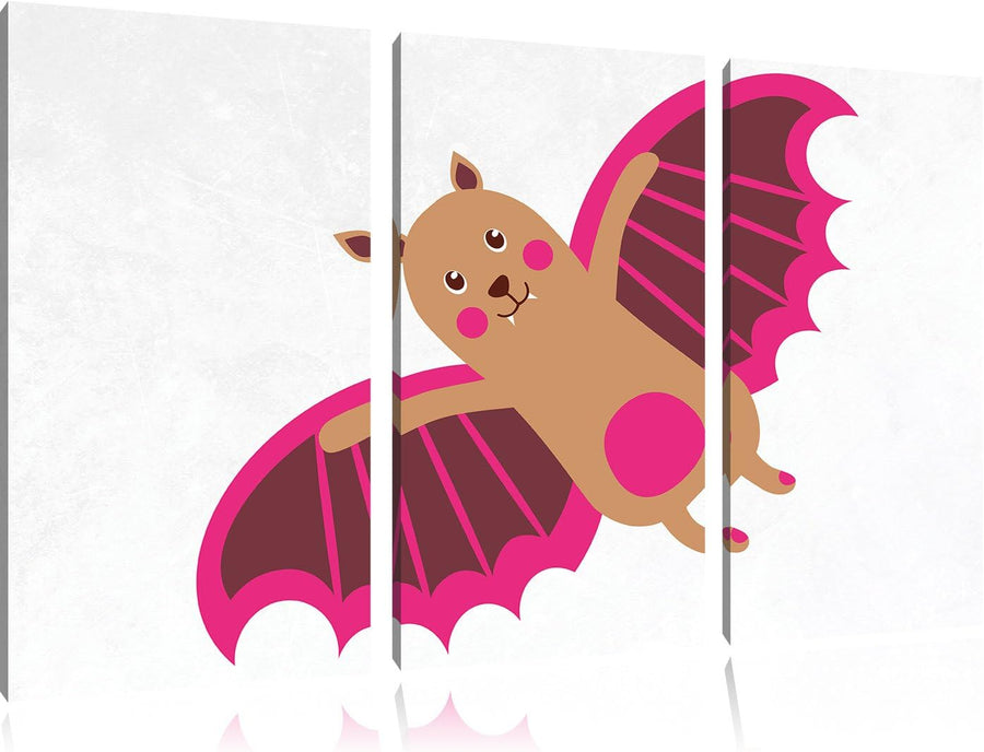 Pixxprint Niedliche Fledermaus / 3-Teilig/Gesamtmass 120cm Leinwandbild bespannt auf Holzrahmen/Wand