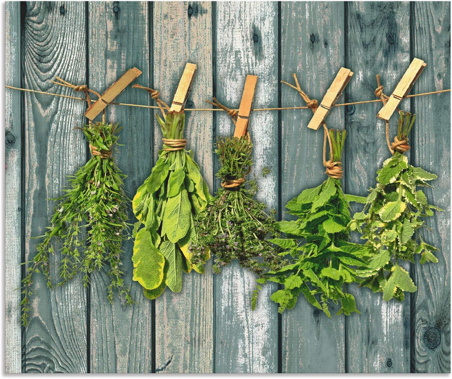 ARTland Spritzschutz Küche aus Alu für Herd Spüle 60x50 cm (BxH) Küchenrückwand mit Motiv Kräuter Ol