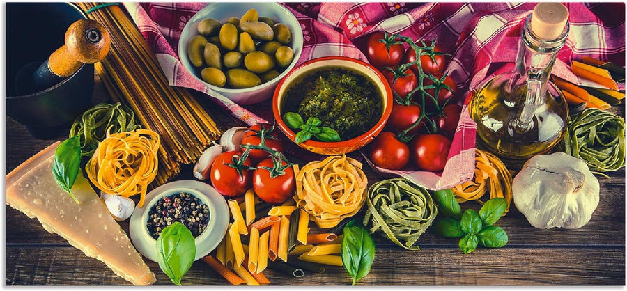 ARTland Spritzschutz Küche aus Alu für Herd Spüle 120x55 cm (BxH) Küchenrückwand mit Motiv Essen Leb
