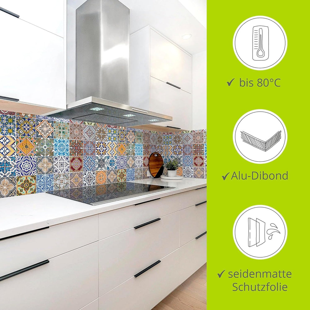 ARTland Spritzschutz Küche aus Alu für Herd Spüle 120x55 cm (BxH) Küchenrückwand mit Motiv Fliesenmu