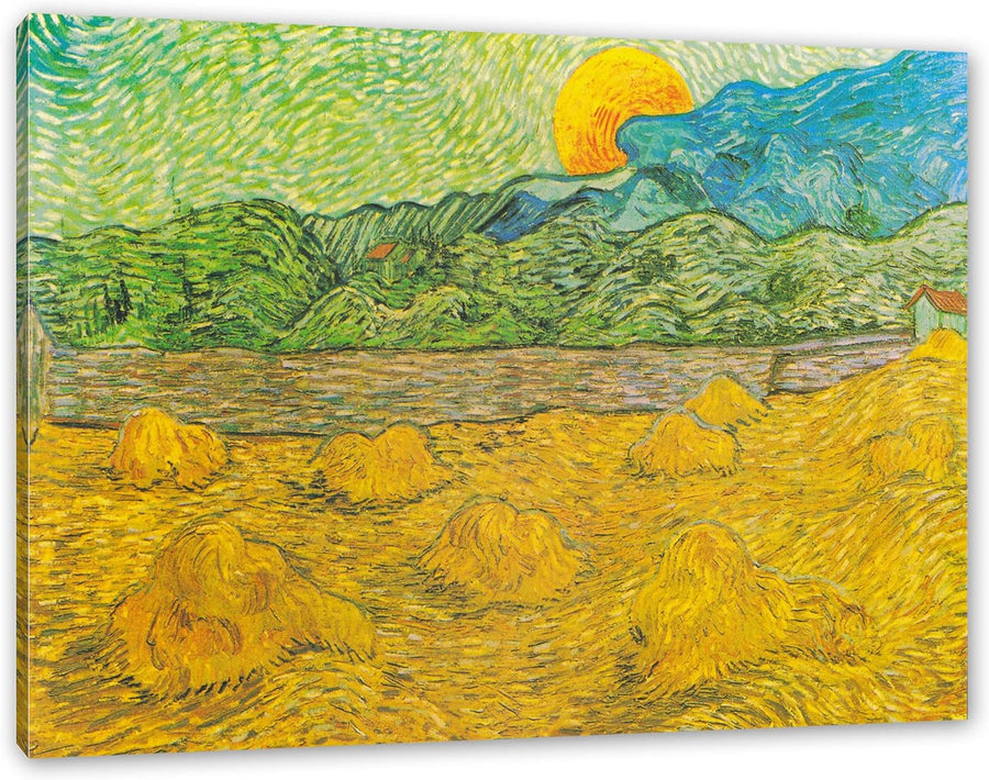 Vincent Van Gogh - Landschaft mit Weizenhaufen als Leinwandbild / Grösse: 100x70 cm / Wandbild / Kun