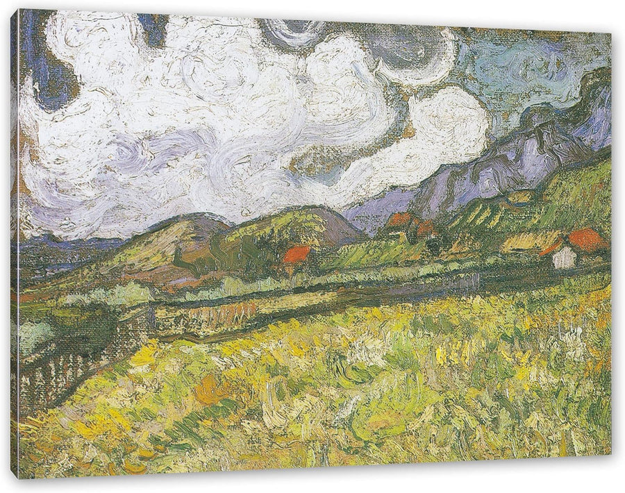 Vincent Van Gogh - Weizenfeld hinter Saint-Paul als Leinwandbild / Grösse: 100x70 cm / Wandbild / Ku