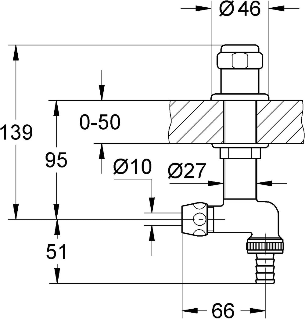 GROHE Original WAS® Untertischventil 1/2″ (Spültischmontage, bis 50 mm verstellbar, eigensicher gege