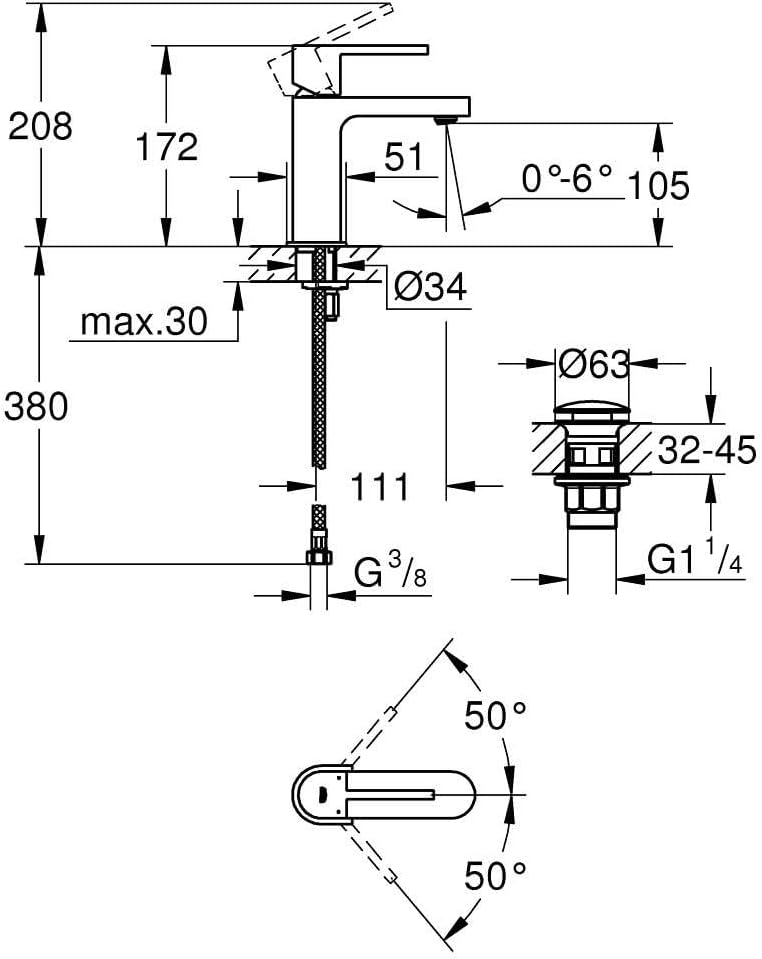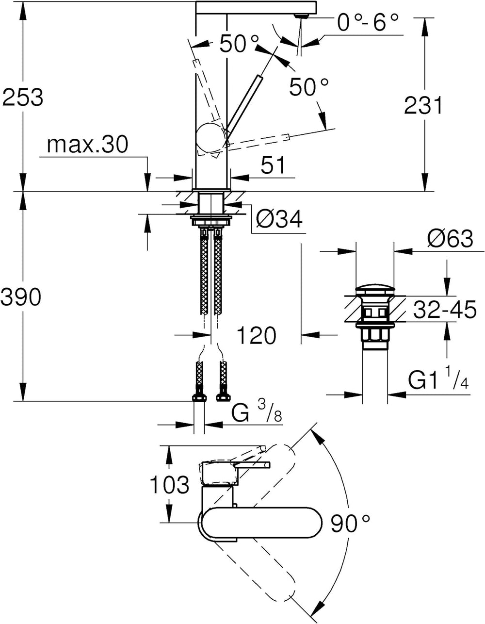 GROHE Plus | Badarmatur- Einhand-Waschtischbatterie | mit Zugstangen- Ablaufgarnitur | chrom | 23871