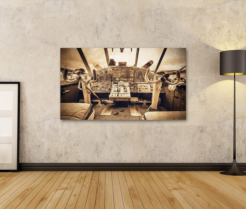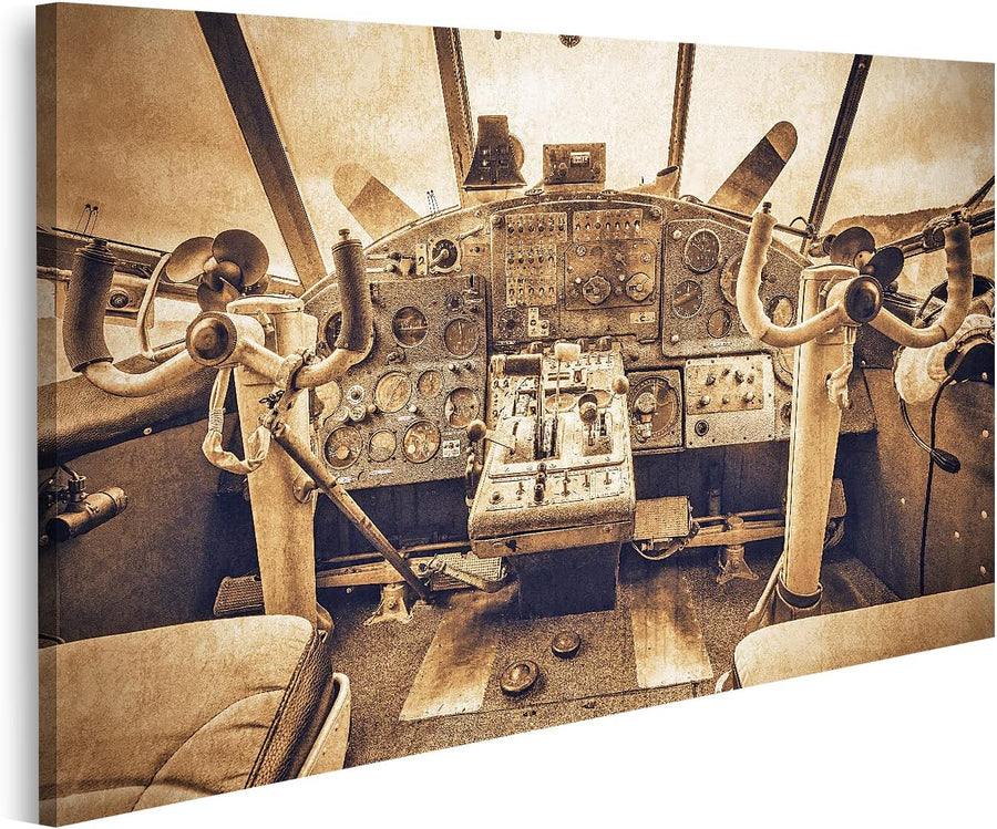 islandburner Bild auf Leinwand Cockpit Ansicht Alt Retro Flugzeug Vintage Stil Bilder Wandbilder Pos