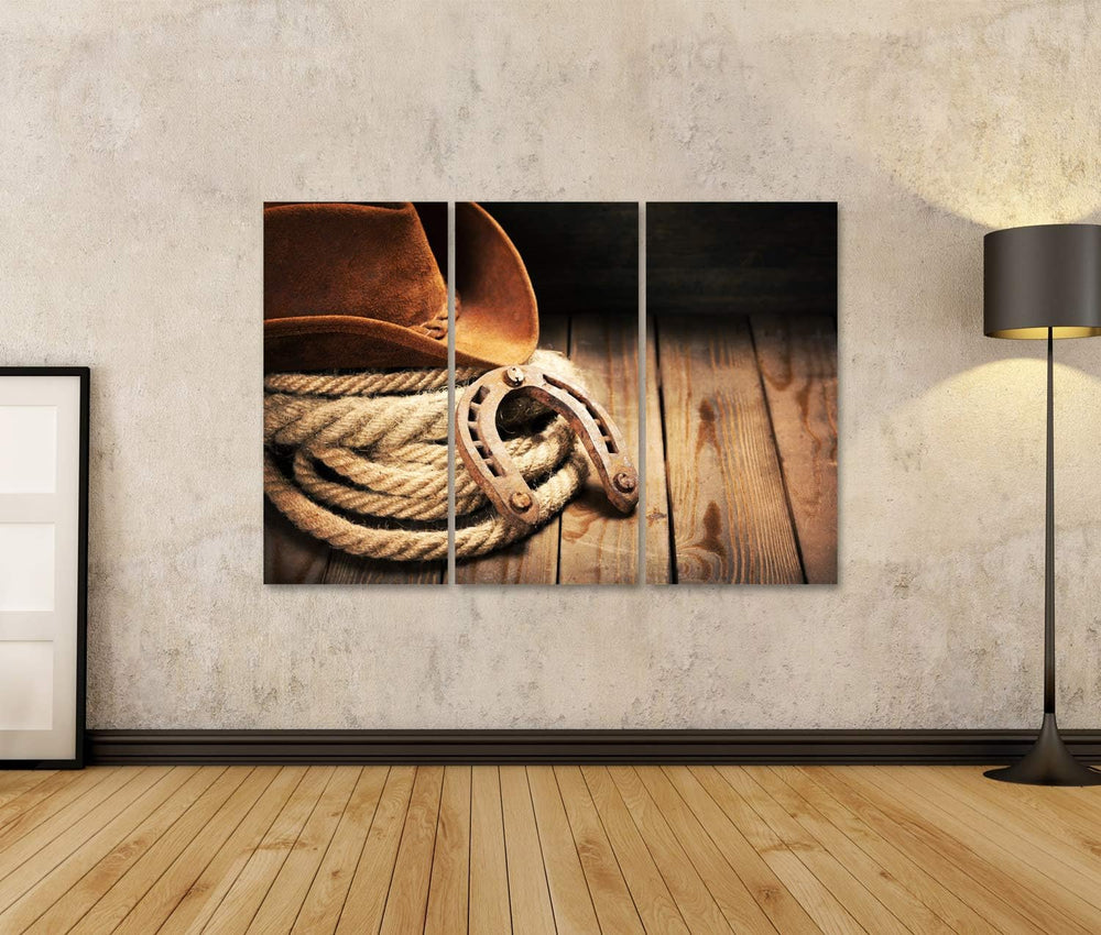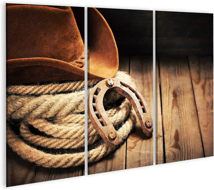 islandburner Bild auf Leinwand Cowboy Wandbild Poster Kunstdruck Bilder Format: 130x80cm - 3 Teile,