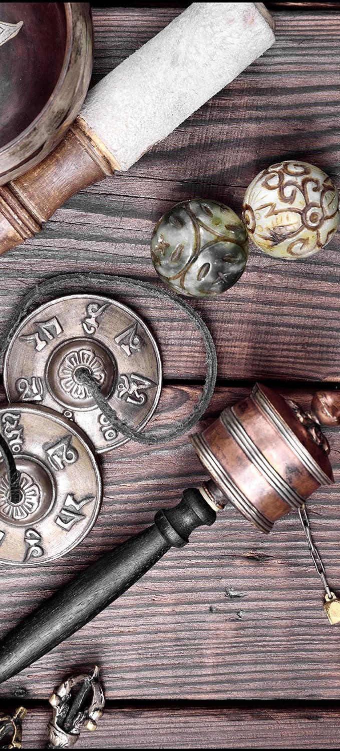 wandmotiv24 Türtapete Tibetische Objekte zur Meditation 70 x 200cm (B x H) - selbstklebende Struktur