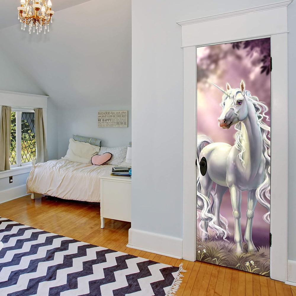 wandmotiv24 Türtapete Prinzessinnen Einhorn, Weiss, Fantasy 70 x 200cm (B x H) - Dekorfolie selbstkl
