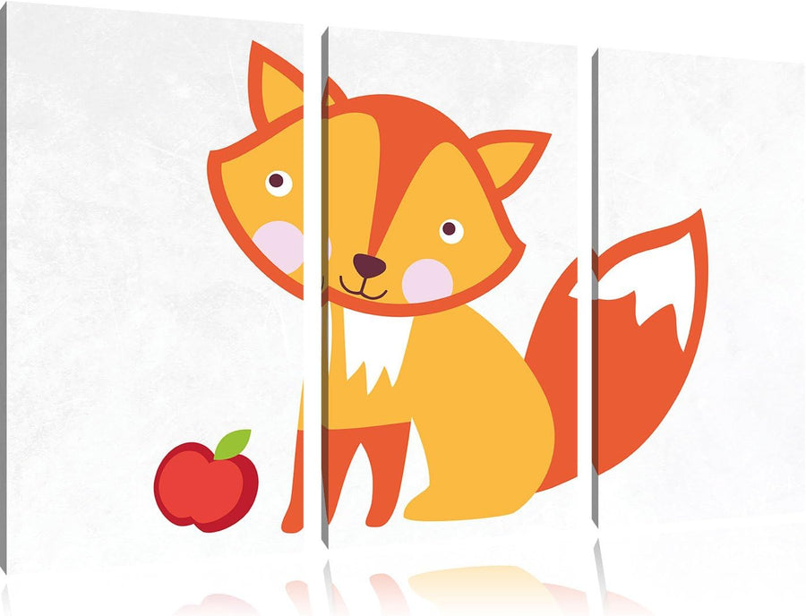 Pixxprint Niedlicher Fuchs mit Apfels als Leinwandbild/Grösse: 3 Teilig (120x80) cm/Wandbild/Kunstdr