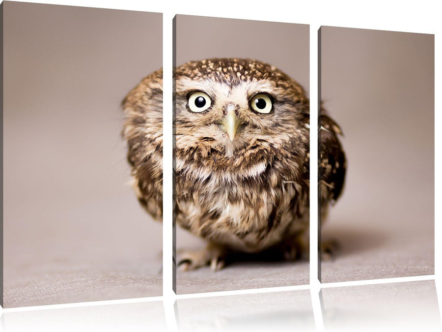 Pixxprint Niedliche Nachteule mit süssem Blick 3-Teiler Leinwandbild 120x80 Bild auf Leinwand