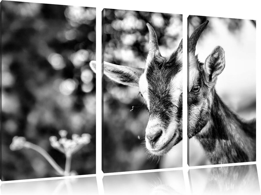 Pixxprint Niedliche Ziege als Leinwandbild/Grösse: 3 Teilig (120x80) / Wandbild/Kunstdruck/fertig be
