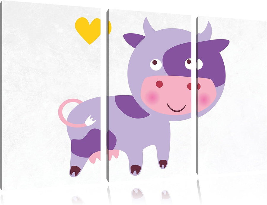 Pixxprint Niedliche Kuh weiss 3-Teiler Leinwandbild 120x80 Bild auf Leinwand
