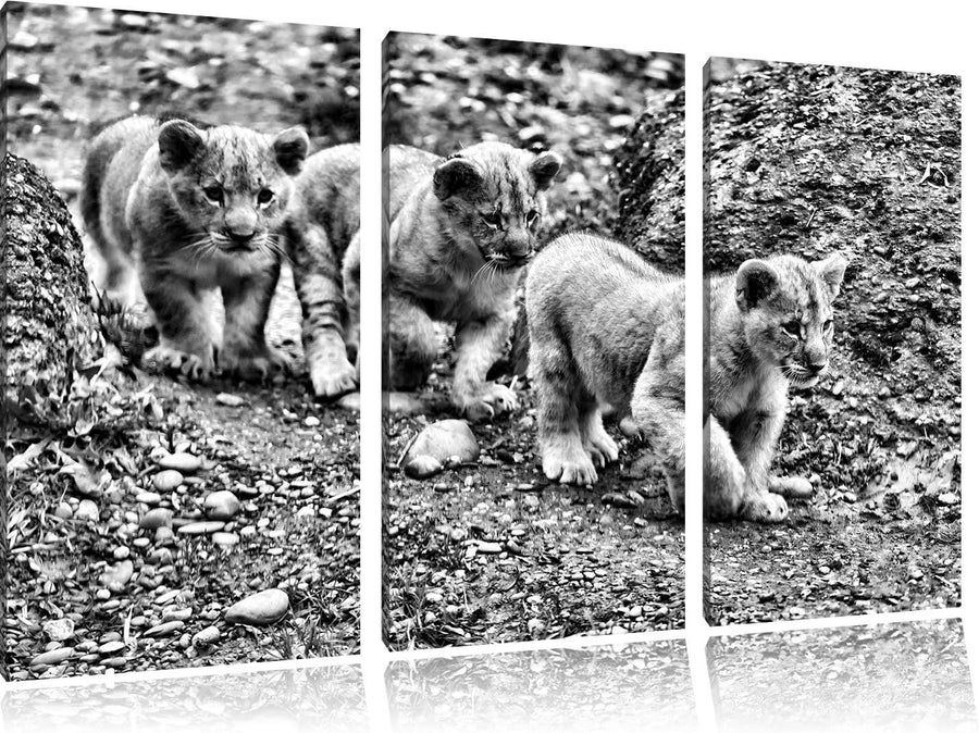 Pixxprint niedliche Löwenjungtiere als Leinwandbild/Grösse: 3 Teilig (120x80) cm/Wandbild/Kunstdruck