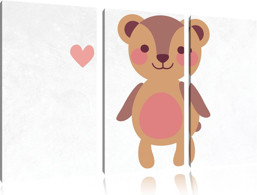 Pixxprint Niedlicher Bär weiss 3-Teiler Leinwandbild 120x80 Bild auf Leinwand