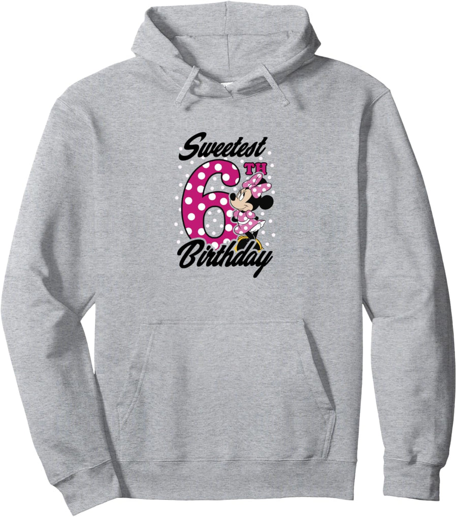 Disney Minnie Mouse Pink Polka Dot Sweetest 6th Birthday Pullover Hoodie