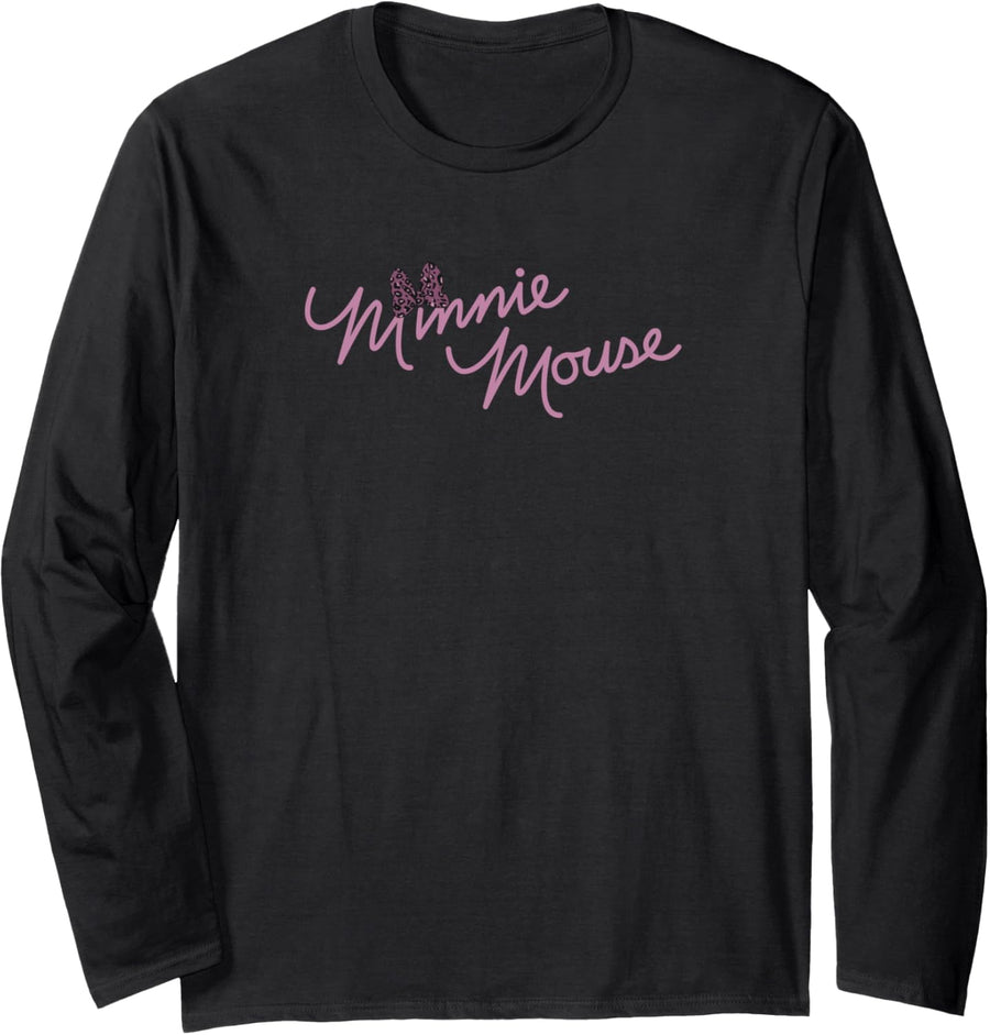 Disney Minnie Mouse Script With Cheetah Print Bow Langarmshirt