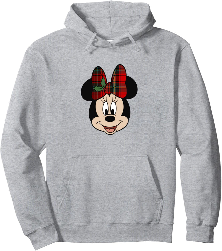 Disney Minnie Mouse Smile Mistletoe Red Plaid Bow Christmas Pullover Hoodie