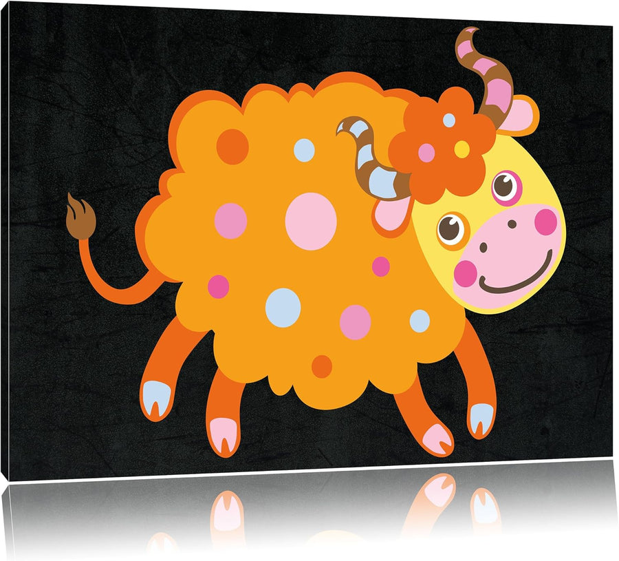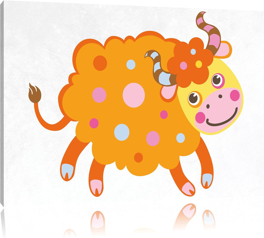 Pixxprint Niedliches Schaf mit Hörnern als Leinwandbild/Grösse: 100x70 cm/Wandbild/Kunstdruck/fertig