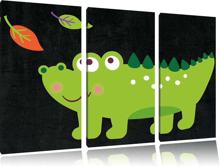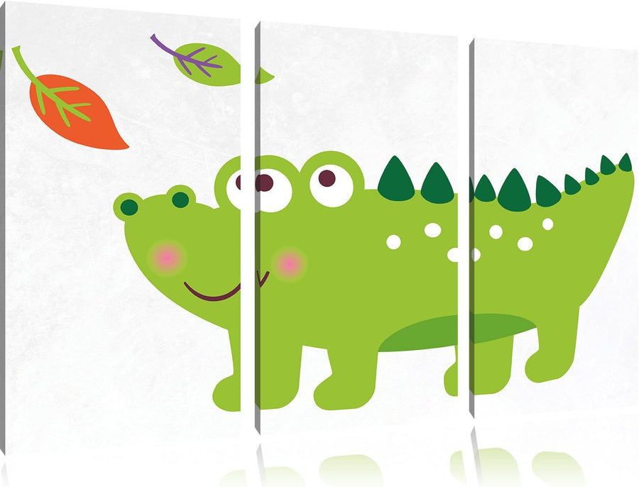 Pixxprint Niedliches Krokodil als Leinwandbild/Grösse: 3 Teilig (120x80) cm/Wandbild/Kunstdruck/fert