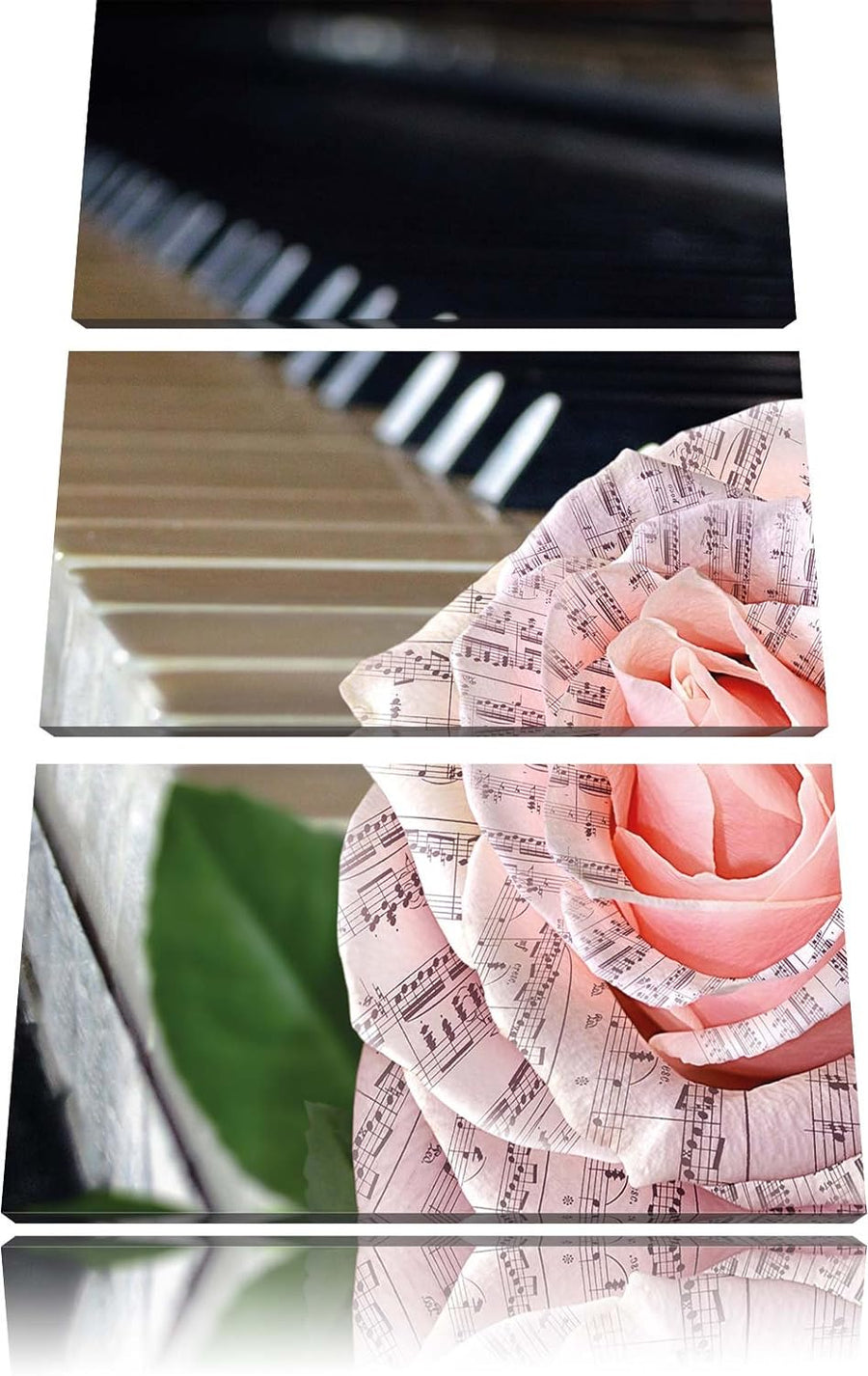 Pixxprint Noten auf zarter Rose neben Klavier 3-Teiler Leinwandbild 120x80 Bild auf Leinwand