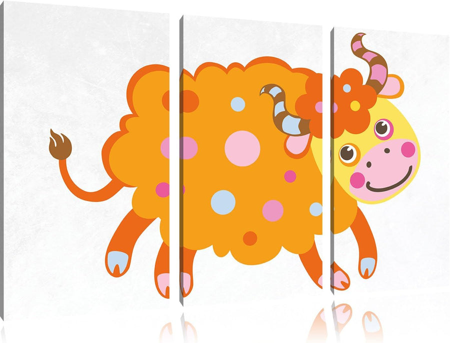 Pixxprint Niedliches Schaf als Leinwandbild/Grösse: 3 Teilig (120x80) cm/Wandbild/Kunstdruck/fertig