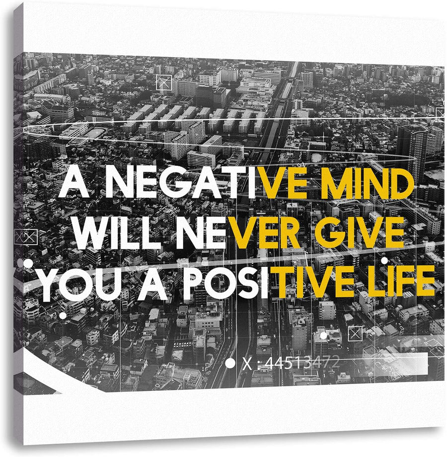 Pixxprint No negative mind Motivaton als Leinwandbild Quadratisch| Grösse: 70x70 cm | Wandbild | Kun