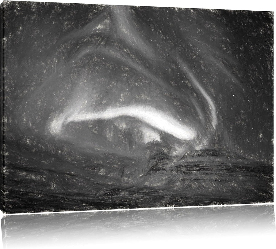 Pixxprint Nordlichter über Island Kunst Kohle Effekt, Format: 100x70 auf Leinwand, XXL riesige Bilde