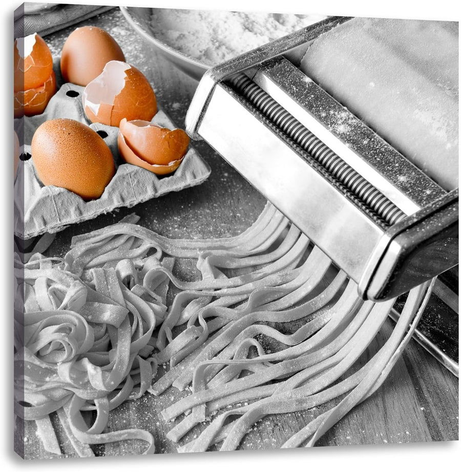 Pixxprint Nudelmaschine mit Eiern als Leinwandbild/Grösse: 70x70 cm/Wandbild/Kunstdruck/fertig bespa