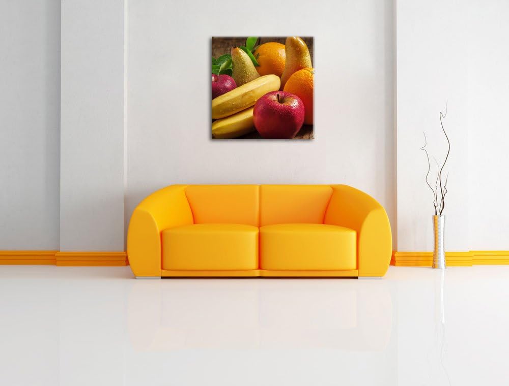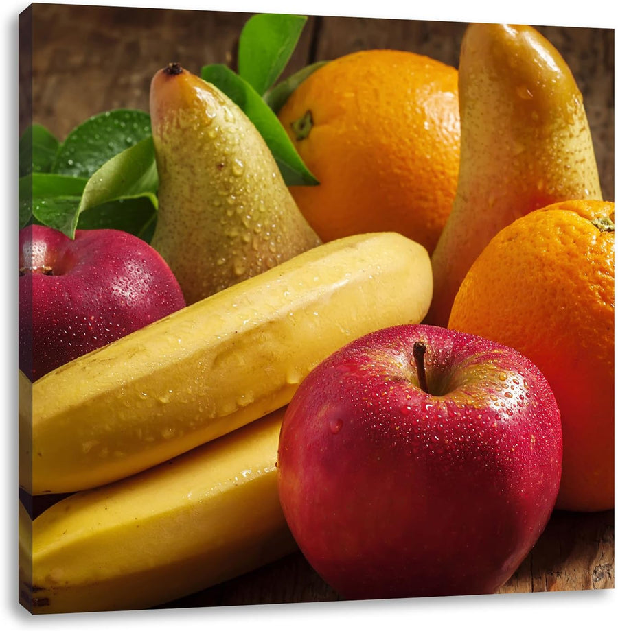 Pixxprint Obst Erdbeeren Kiwi Orangen / 70x70cm Leinwandbild bespannt auf Holzrahmen/Wandbild Kunstd