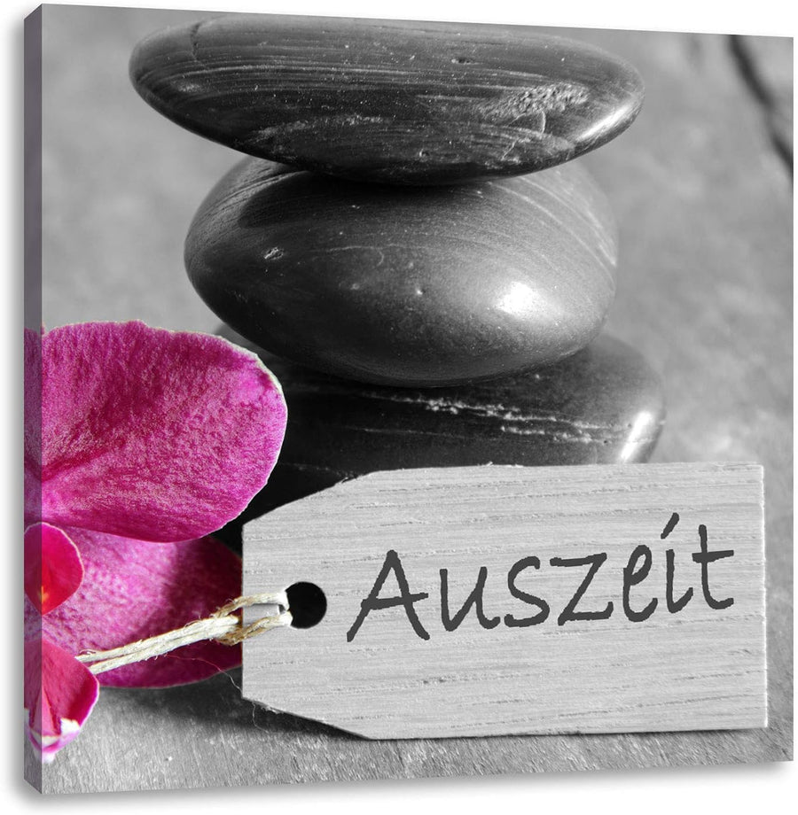 Pixxprint Orchidee mit Zen Steinen schwarz/weiss, Format: 70x70 auf Leinwand, 70x70