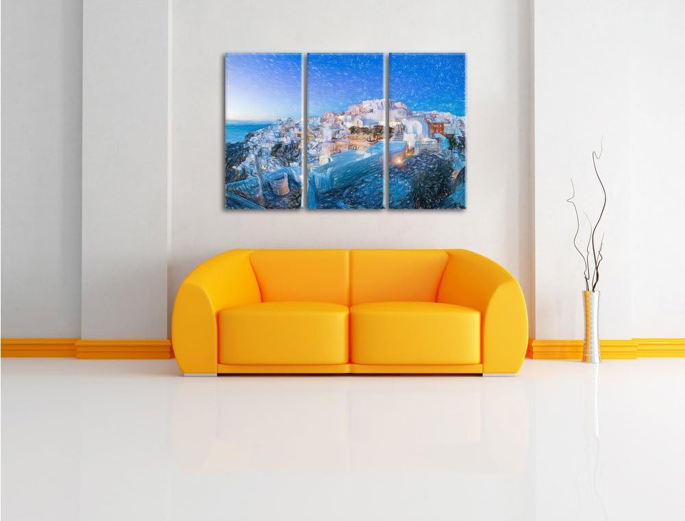 Pixxprint Oia Dorf Santorin als Leinwandbild/Grösse: 3 Teilig (120x80 cm) cm/Wandbild/Kunstdruck/fer