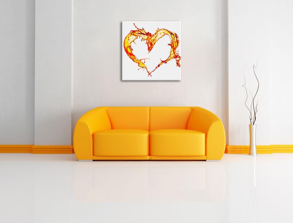 Pixxprint Oranges Herz aus Wasser als Leinwandbild Quadratisch/Grösse: 70x70 / Wandbild/Kunstdruck/f