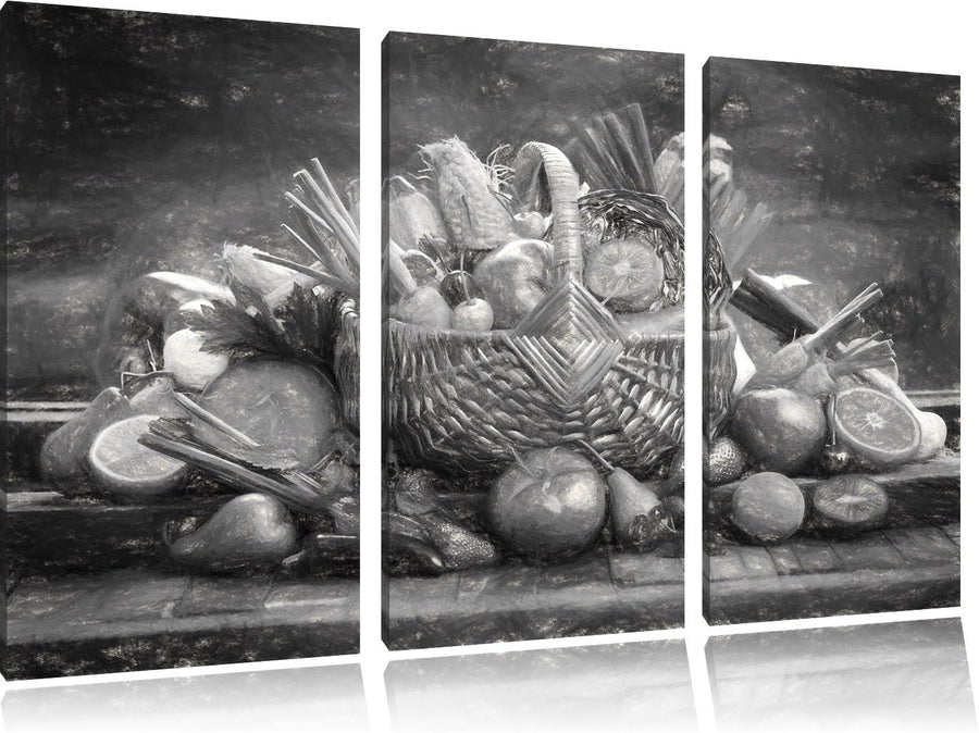 Pixxprint Obst und Gemüse im Korb als Leinwandbild/Grösse: 3 Teilig (120x80 cm) cm/Wandbild/Kunstdru