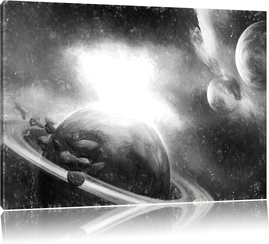 Pixxprint Planeten und Meteoriten im Weltraum Kunst B&W 3-Teiler Leinwandbild 120x80 Bild auf Leinwa