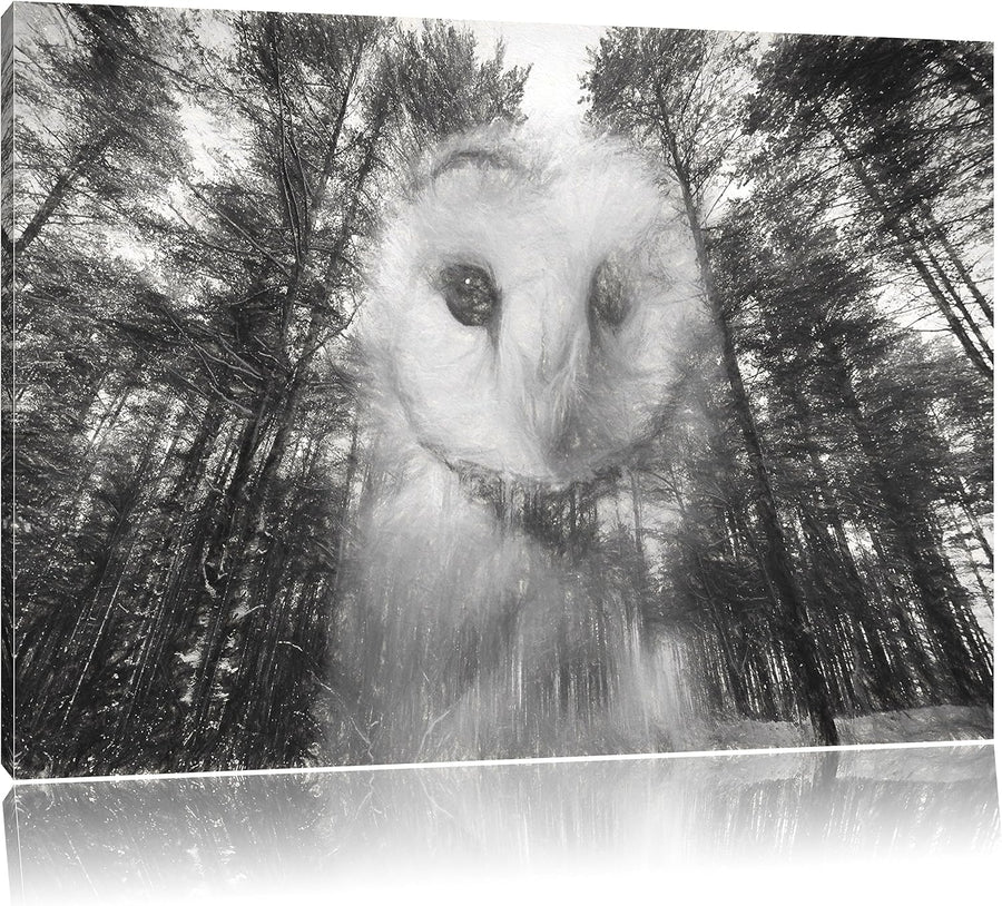 Pixxprint Portrait Einer Eule als Leinwandbild/Grösse: 100x70 / Wandbild/Kunstdruck/fertig bespannt,