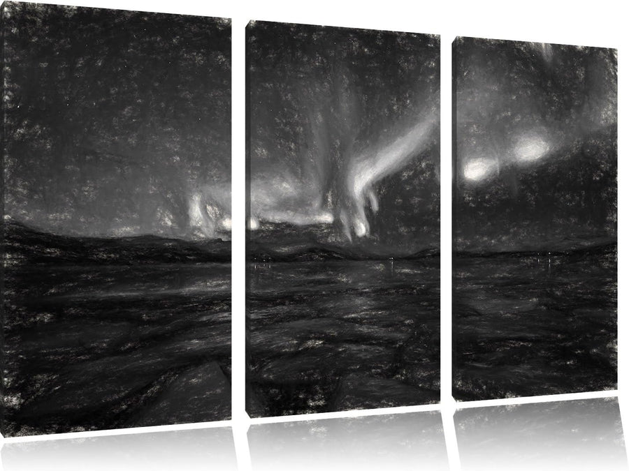 Pixxprint Polarlicht am Himmel Kunst Kohle Effekt 3-Teiler Leinwandbild 120x80 Bild auf Leinwand