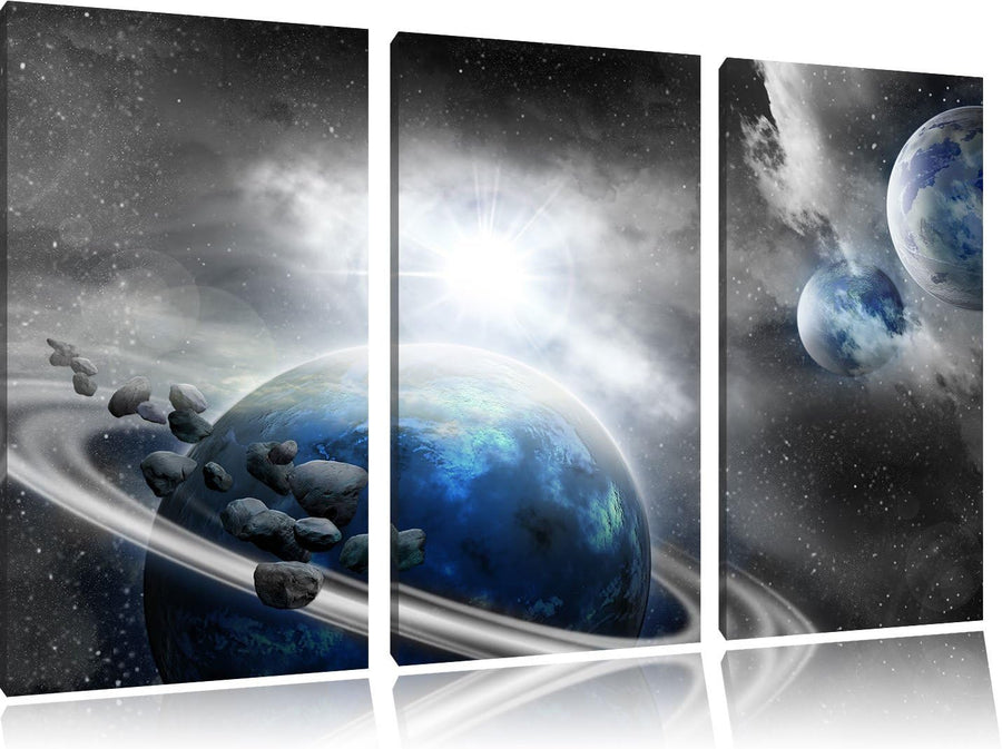 Pixxprint Planeten Meteoriten im Weltall als Leinwandbild - Grösse: 3-Teilig (120x80cm) - Wandbild -