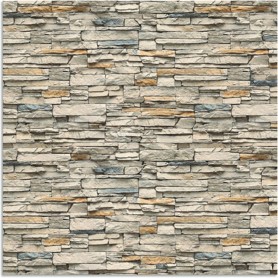 ARTland Spritzschutz Küche aus Alu für Herd Spüle 60x60 cm (BxH) Küchenrückwand mit Motiv Steinwand