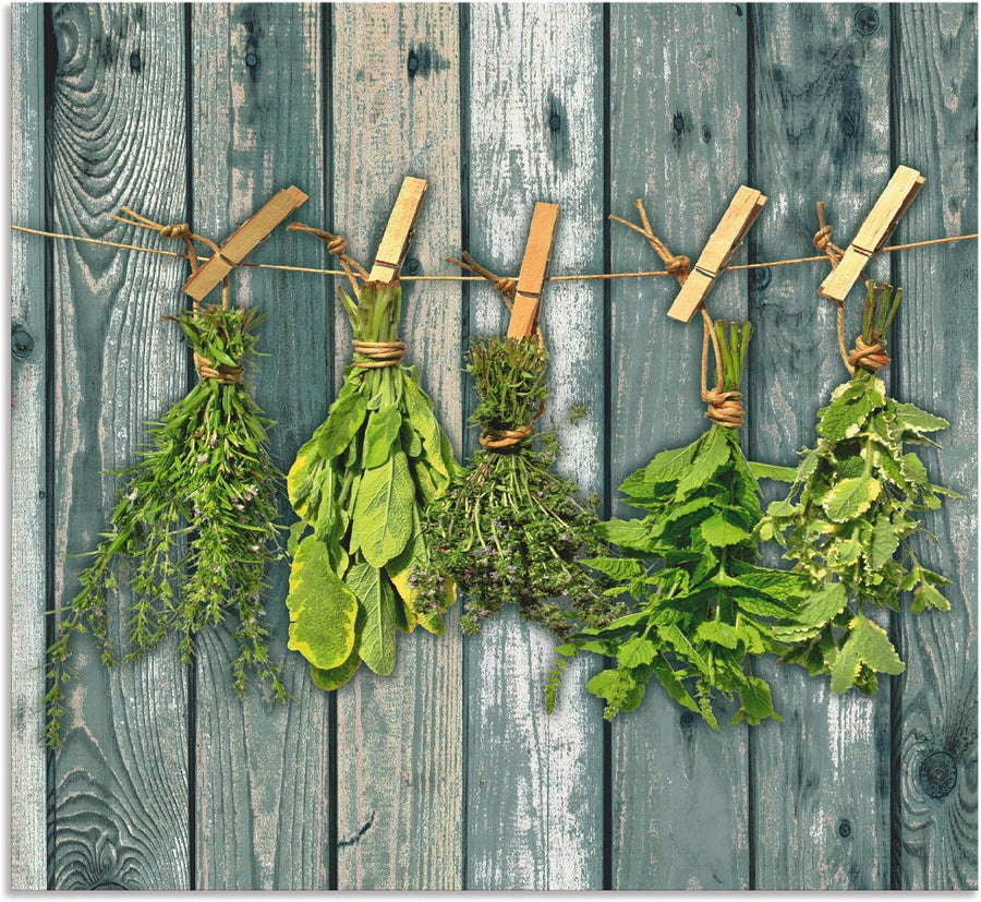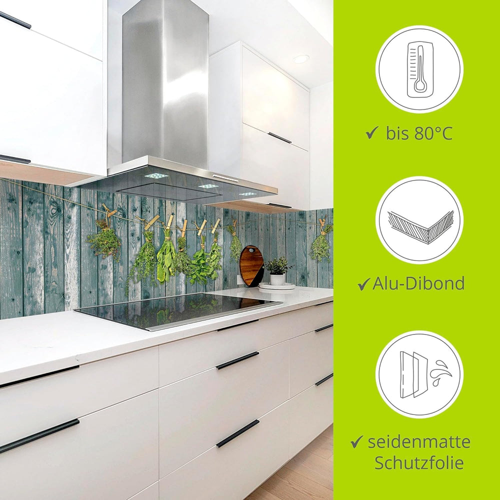 ARTland Spritzschutz Küche aus Alu für Herd Spüle 60x55 cm (BxH) Küchenrückwand mit Motiv Kräuter Pf