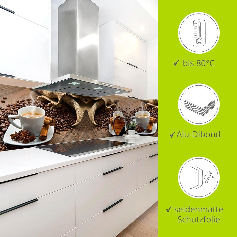 ARTland Spritzschutz Küche aus Alu für Herd Spüle 60x60 cm (BxH) Küchenrückwand mit Motiv Getränke K