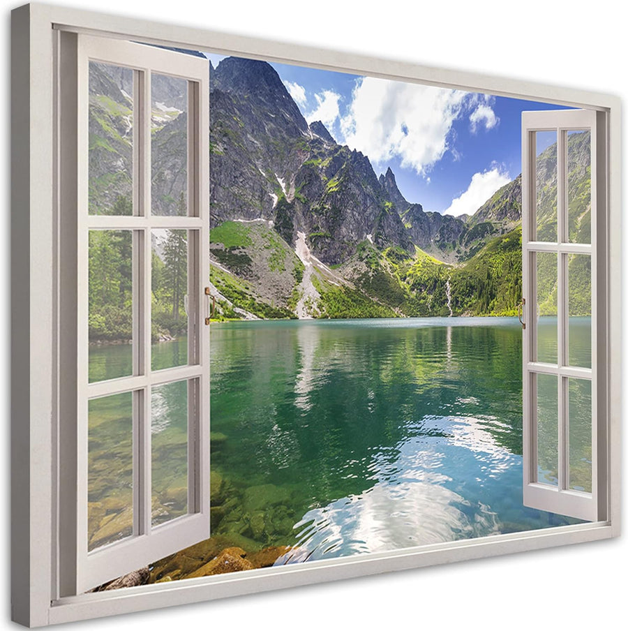 Feeby Leinwand Bilder - Fensterblick Natur- 90x60 cm- Deko Wohnzimmer - Wandbilder Schlafzimmer - De