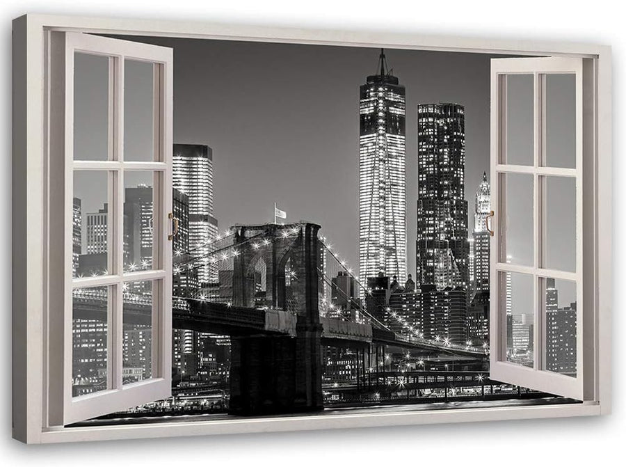 Feeby Leinwand Bilder - Fensterblick Natur- 60x40 cm- Deko Wohnzimmer - Wandbilder Schlafzimmer - De