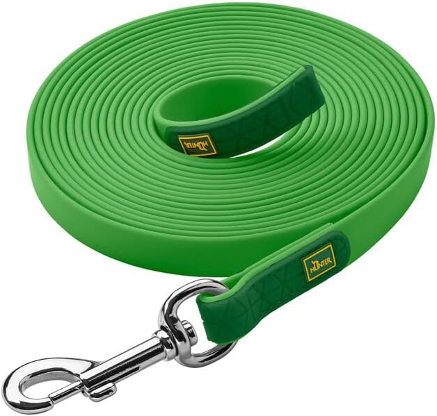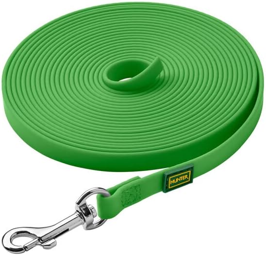 HUNTER Verstellbare Hundeführleine, Leder, schlicht, strapazierfähig, geschmeidig, 1.6 x 200 cm, oli