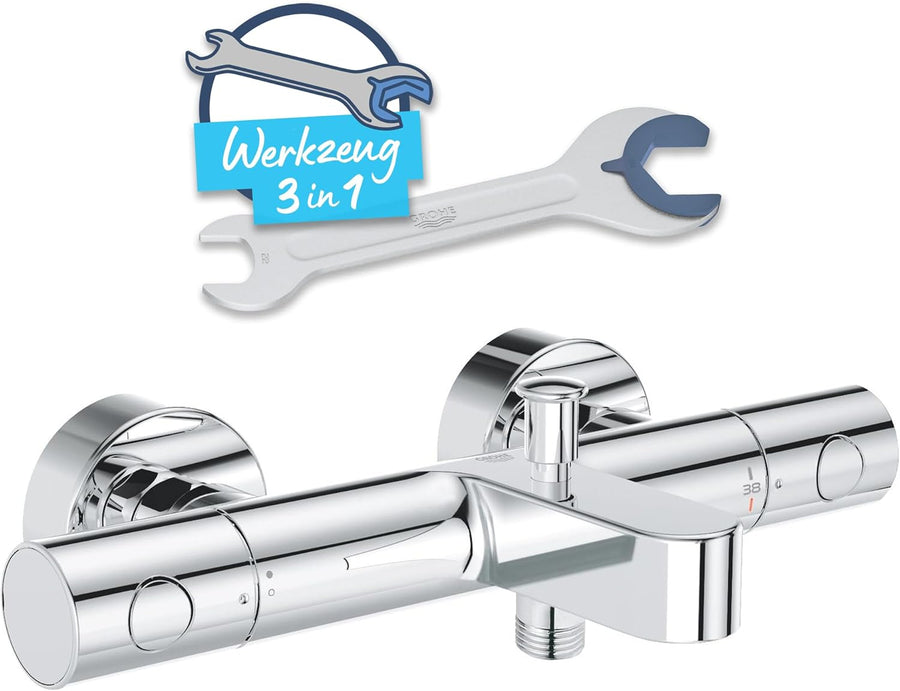 GROHE Precision Feel - Thermostat-Wannenbatterie (wassersparend, Temperaturbegrenzung, Wandmontage,