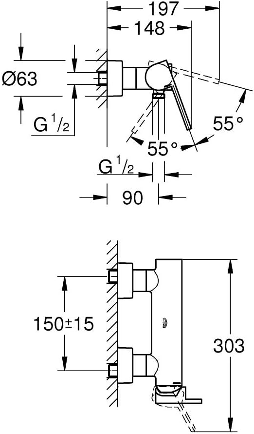 GROHE Precision Trend New - Thermostat-Brausebatterie (wassersparend, für die Wandmontage, langlebig