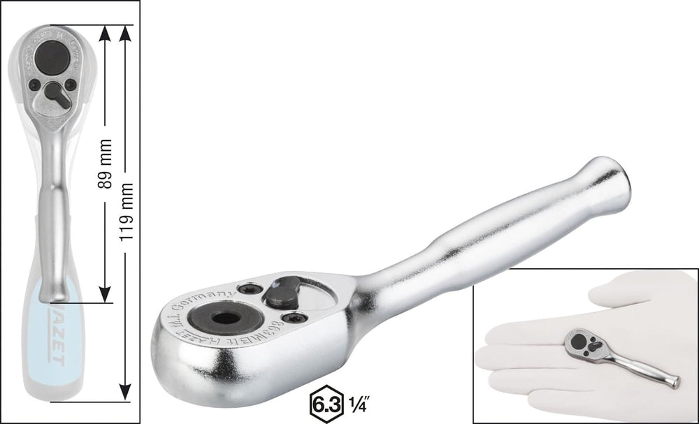 HAZET Umschaltknarre (1/4 Zoll Vierkant, 20 Zähne, Quergriff) 863Q 1/4 Zoll Quergriff, 1/4 Zoll Quer