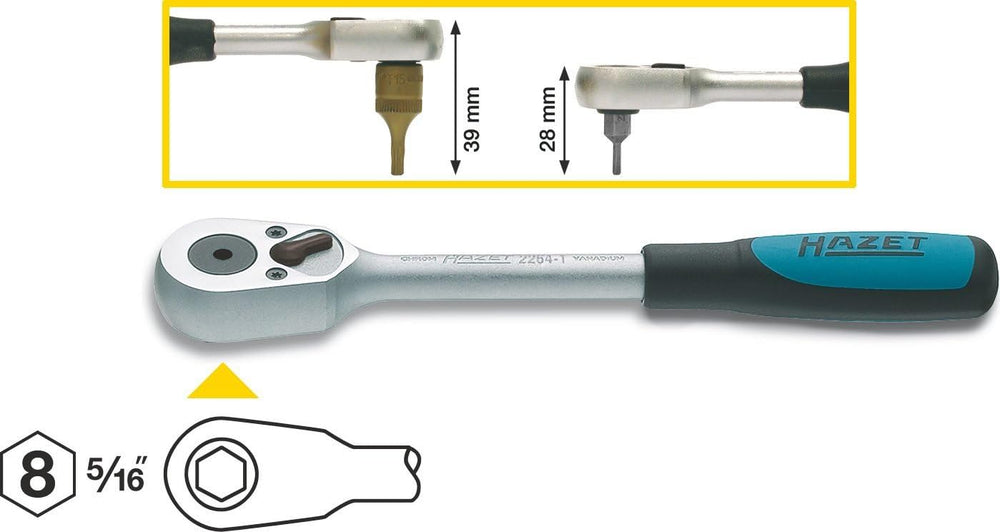 HAZET Umschaltknarre (5/16 Zoll Sechskantaufnahme, 30 Zähne, ideal für Bits) 2264-1 5/16" Sechskanta