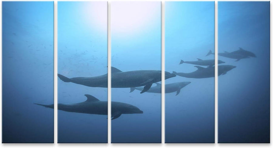 islandburner Bild auf Leinwand Delfine Blick Unter Wasser Im Meer Wandbild Poster Kunstdruck Bilder,